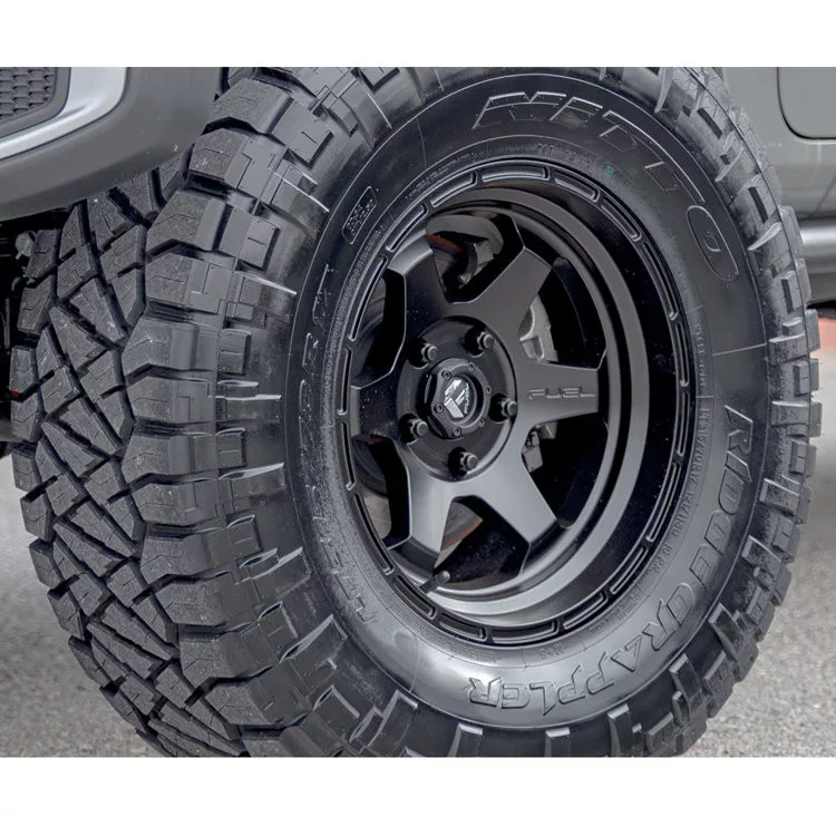 The unique design enhances the vehicle's visual appeal and adds to its predatory nature. A set of these rims gives you the perfect combination of sporty looks and high performance. Compatible with: Silverado 1500 19->;Suburban 21->;Tahoe V 21->;New Bronco 2 Door 21->;New Bronco 4 Door 21->;Ranger PJ/PK 06-11 EU;Ranger 11-> EU;Sierra 1500 19->;Yukon V 21->;Pajero 99-21;Titan A60 04-15;Titan 04->;4Runner 84-02;4Runner 03-22;FJ Cruiser 06-21;Hilux 05->;Land Cruiser J8 90-97;Sequoia 00-07;Tacoma 95-04;Tacoma 05->;Tundra 99-06