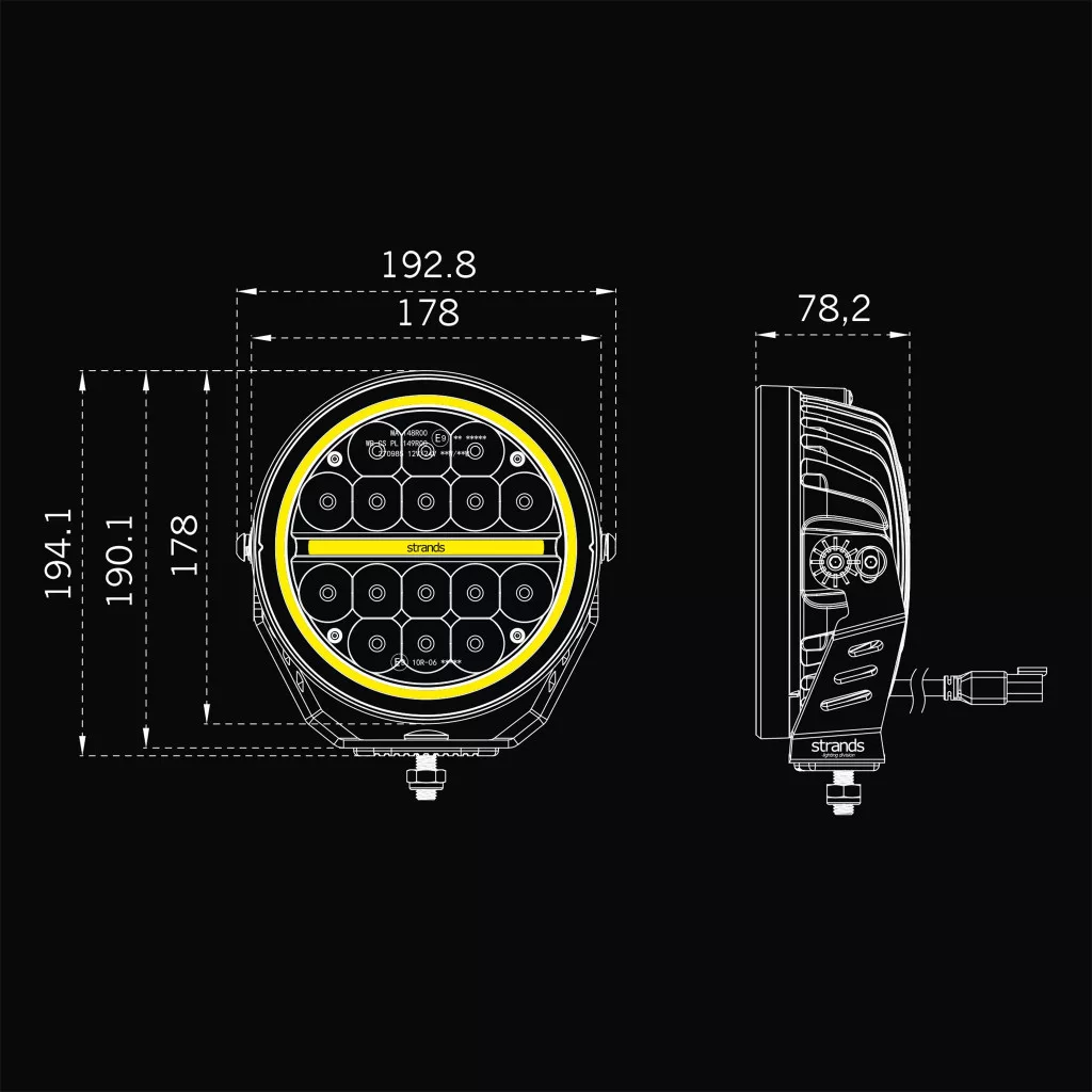 - Road traffic condition: 342 m @ 1 lux / 694 m @ 0.25 lux
