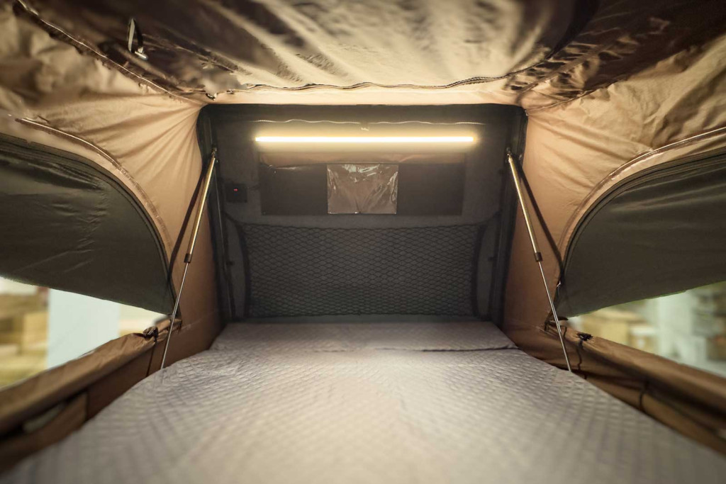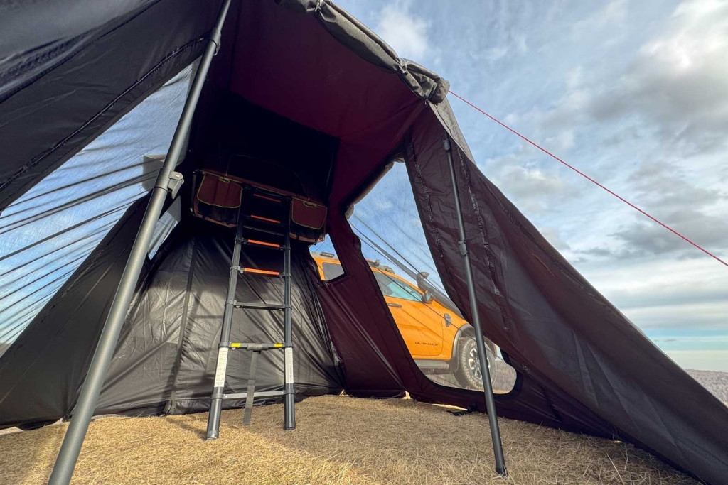 The tent includes two rows of versatile T-slots on all sides, enabling a truly modular approach to accessorizing. Easily mount roof racks to transport canoes, bicycles, or other equipment, and use the side accessory holders for traction boards, shovels, high-lifts, and more. The T-slots are perfect for auxiliary lights and other add-ons, offering limitless customization options to tailor your rooftop tent to your specific needs.
