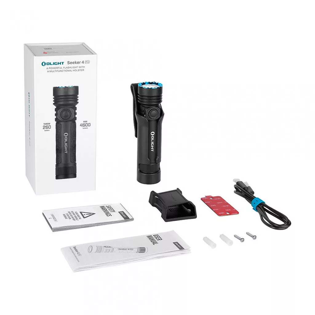 Olight Seeker 4 Pro is the newest and most powerful model of its manufacturer's popular and long-honed Seeker collection, which offers an unimaginable maximum light output of 4,600 lumens in a compact size and a combined light beam that reaches up to 260 meters. The lamp works like its predecessor with a high-performance 5000 mAh li-ion battery, but now uses it even more efficiently, thanks to which the light output has been increased to wild numbers without compromising the operating time at all! The lamp's efficient LEDs combined with the optical TIR lens create a high-quality combination beam that illuminates a very wide area both lengthwise and widthwise. The amazing performance is crowned by the amazingly small size of the lamp: this lamp fits in the hand like a nose to the head, so we can warmly recommend it for both demanding professional use and the role of general lighting for anyone!