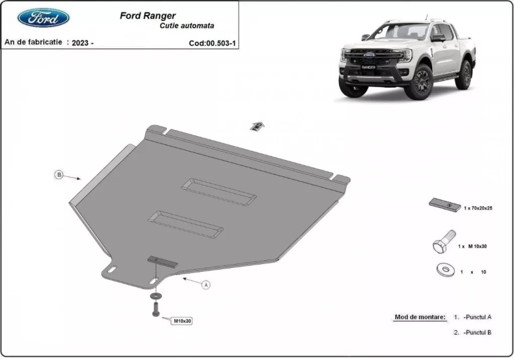 Ford Ranger 2023-2025 SCUT Steel Gearbox (automatic) skid plate