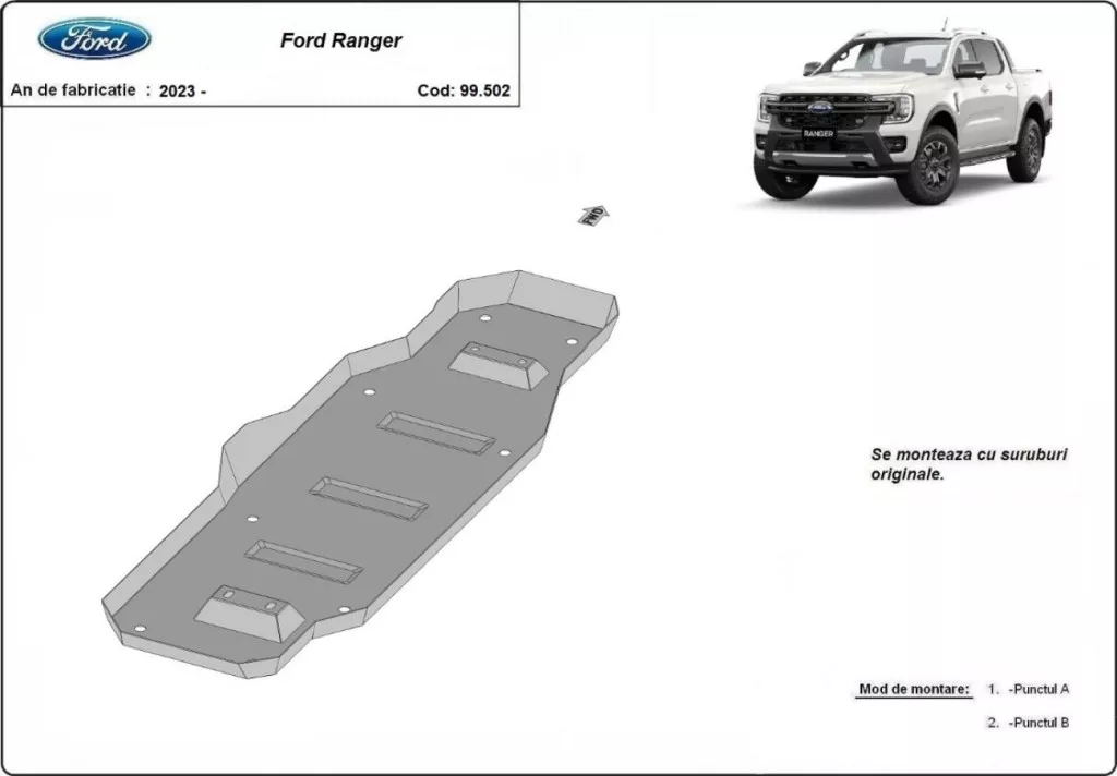 Ford Ranger (MB3G9A147CF; 2643728) 2023-2025 SCUT Steel Fuel tank skid