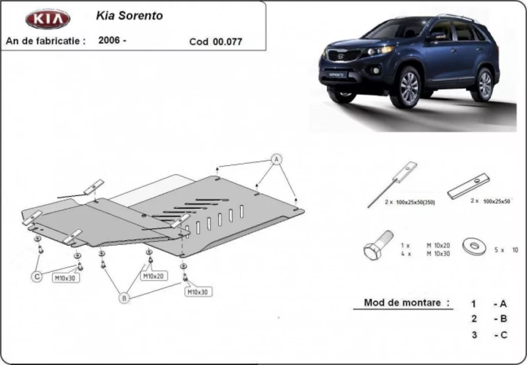 Kia Sorento 2006-2010 SCUT Steel Gearbox and differential skid plate