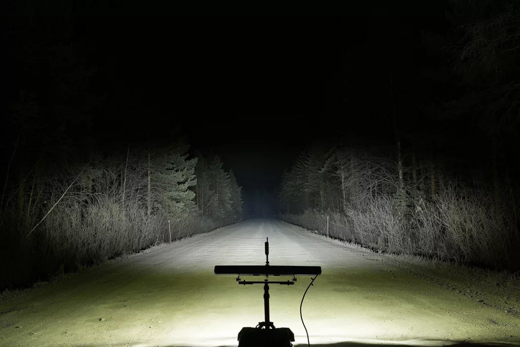 The beam of the C820 Gen3 combines elements optimized for road traffic: in the middle of the light pattern there is a bright and clear main spot offering a long range, with a wide beam opening laterally from the side of the road to the side - right from the bow. The light beam is shaped flat with the help of reflectors, so that the light is not unnecessarily directed in front of the bow or at the tops of the trees. The main difference between the curved and straight Black Boost is the width of the light beam: the curved body spreads the light pattern horizontally, and the main beam in the middle is twice as wide as the straight model. Correspondingly, in a straight panel, the entire light output of the main spot is directed straight ahead, so that the range of the light can be maximized. When comparing beams, it is therefore advisable to choose the curved version when looking for a wide beam and improving overall visibility, but if the car's own lights illuminate the first approx. 50-100 meters well, and you want to invest more in range, the straight model is the right choice. The color temperature of the panel is 5700 Kelvin. Due to its size, the C820 Gen3 is the best choice for the front of large vehicles, either in a traditional shield rack installation or embedded in the air intake.