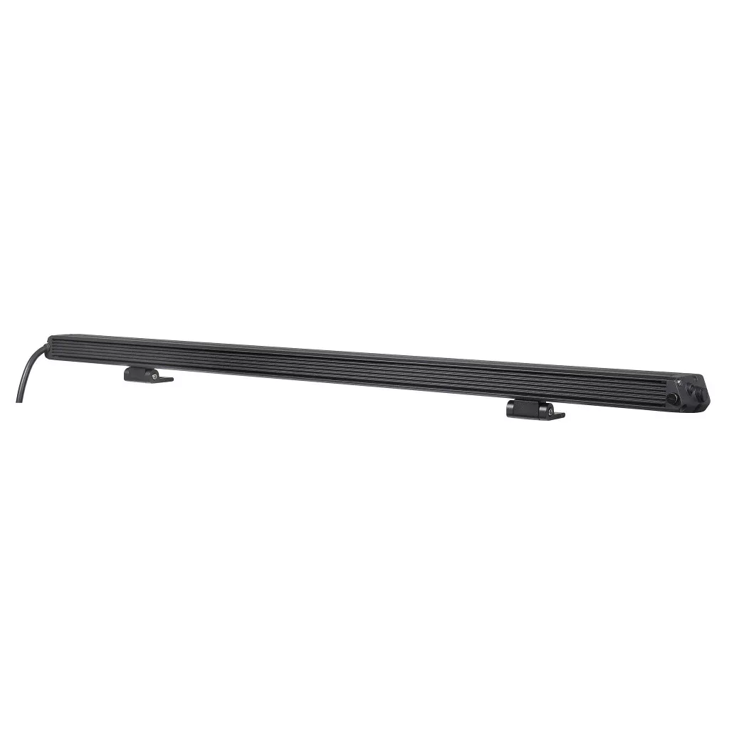 The led bar's edgeless lens is made of UV-protective and virtually unbreakable polycarbonate, designed to withstand both stone impacts and scratches from branches. The edgeless lens prevents the accumulation of snow, ice, or dirt, ensuring the lens remains clean even in adverse weather conditions.