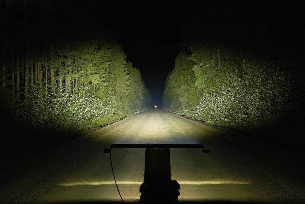 Panther Aero S1050 provides an ideal light pattern for navigating the challenging dark roads of the Northern regions, offering a long reach and wide spread to illuminate road edges. The light pattern is softly delimited vertically to avoid creating a distracting light ball in front of the vehicle. Despite this vertical constraint, the light pattern still provides sufficient height to illuminate uneven terrain and prevent harsh shadows. Panther's balanced and combined light pattern enhances driving safety by increasing the driver's reaction time to detect obstacles, thanks to the larger illuminated area.