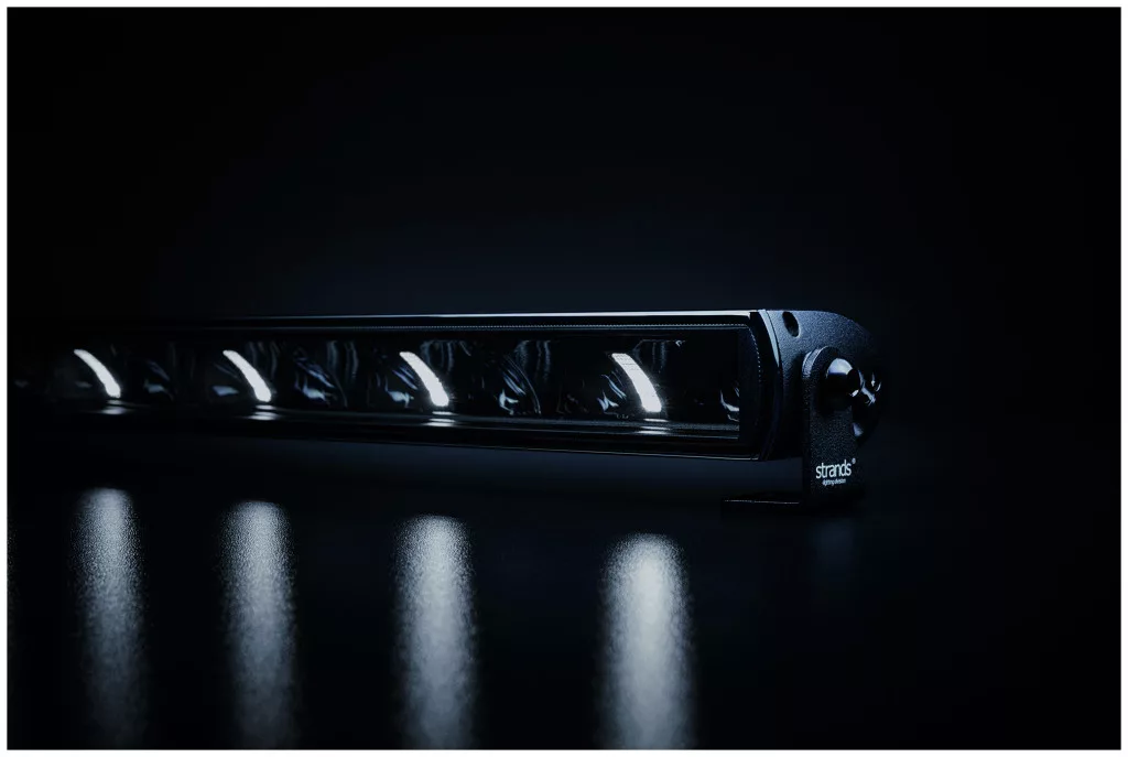 Strand's Dark Knight Nuuk 14" is a new generation led bad specially designed for electric vehicles. Nuuk offers great performance with lower power consumption, and the ramp's high-quality light cone produces, according to the manufacturer, a maximum output of 6500 lumens with an impressive range of 357 m @ 1 lux. The powerful combined light cone shines both far and wide, so that even game that may suddenly jump forward is detected in time. The led bar has a very low profile, which makes it easy to install even in tight spaces where larger led bars do not fit. Dark Knight Nuuk has a modern look, and its dark structure and optics allow discreet and stylish mounting practically anywhere. In addition, Dark Knight Nuuk has both orange and white parking lights, which complement the modern look of the ramp.