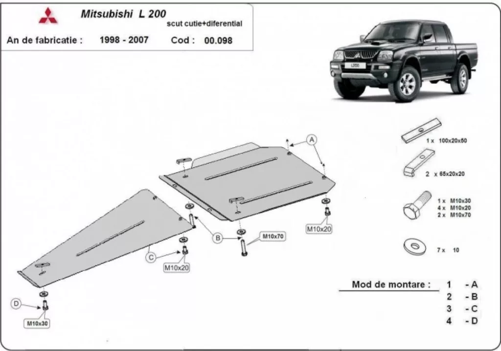 Mitsubishi L200 1998-2007 SCUT Steel Gearbox and differential skid plate