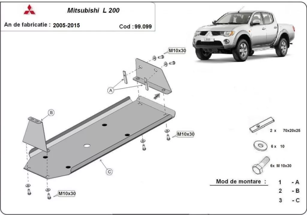 Mitsubishi L200 2005-2015 SCUT Steel Fuel tank skid