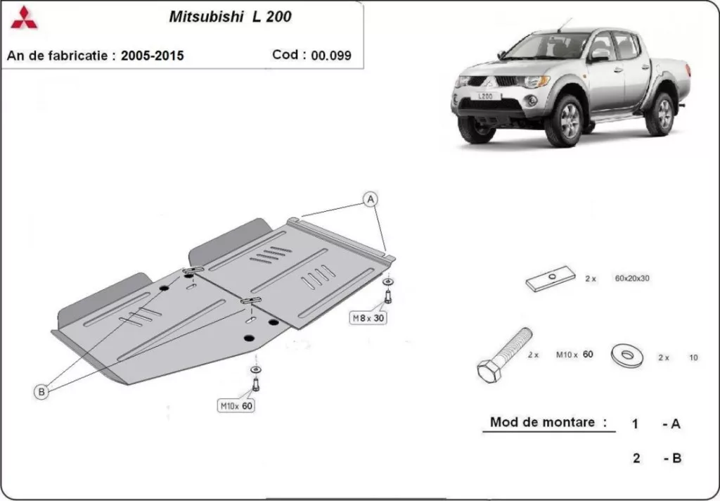 Mitsubishi L200 2005-2015 SCUT Steel Gearbox and differential skid plate