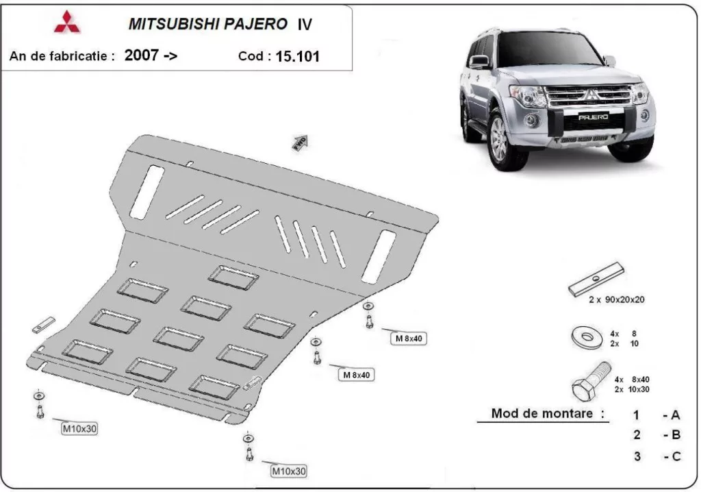 Mitsubishi Pajero 4 (V80, V90) 2007-2021 SCUT Steel Engine and cooler skid plate