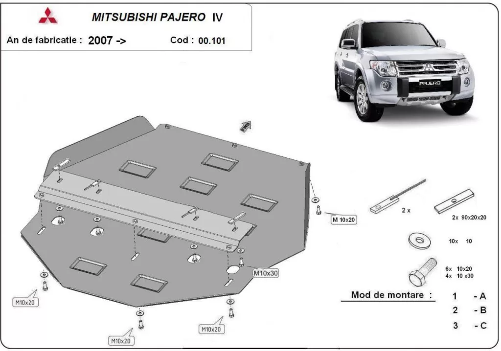 Mitsubishi Pajero 4 (V80, V90) 2007-2021 SCUT Steel Gearbox skid plate