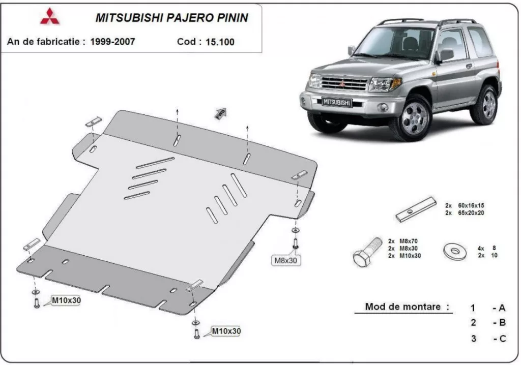 Mitsubishi Pajero Pinin 1997-2007 SCUT Steel Engine skid plate
