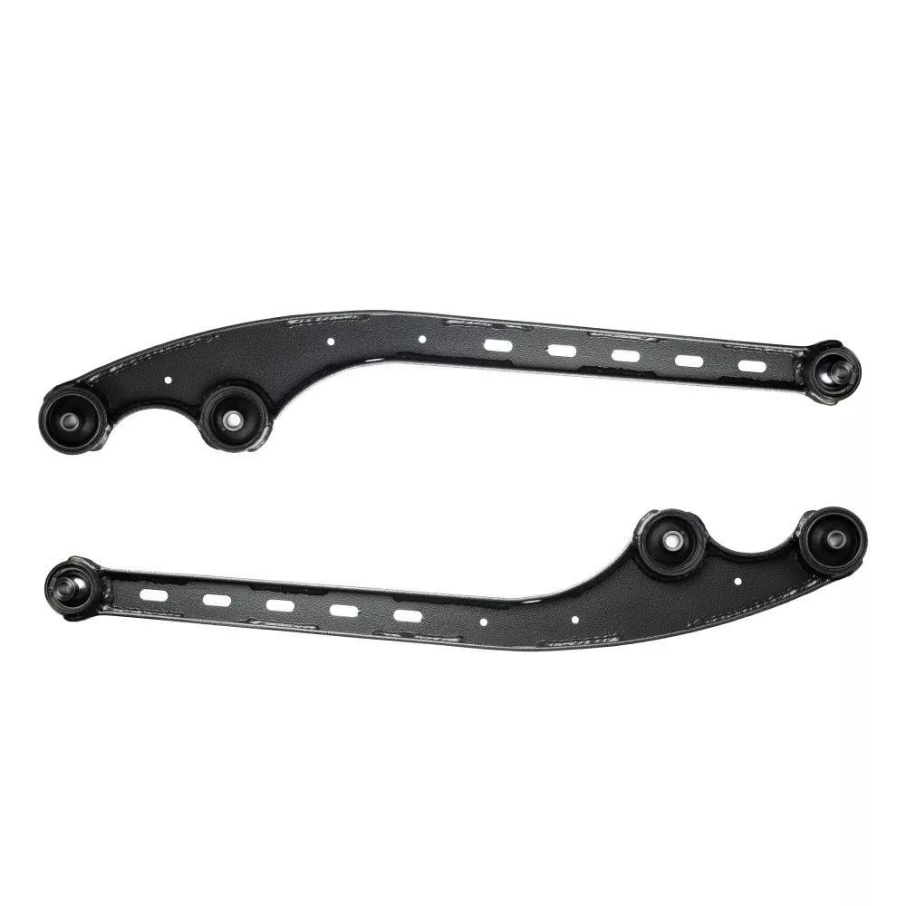 Designed for vehicles navigating extremely rugged terrain where control arms need to withstand heavy contact with rocks, tree roots, and more, while also providing a high degree of axle articulation for maximum traction. These control arms feature adjustable front axle angle and increased length for optimal suspension performance with lifts between 2 and 4 inches. The control arm mounts to the vehicle frame are equipped with uniball-type bearings, allowing for a wide range of control arm movement while maintaining precise steering control and a good feel for what's happening at the wheel-to-ground interface. The pivot point includes provisions for lubrication and bearing cleansing.
