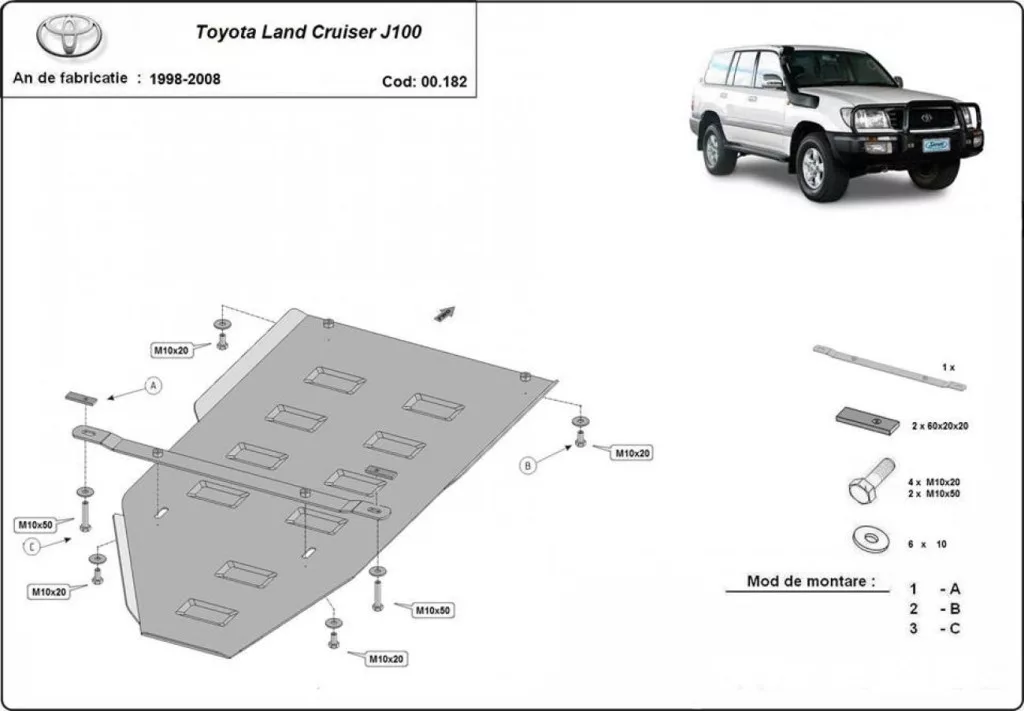 Toyota Land Cruiser J100 1998-2008 SCUT Steel Gearbox skid plate
