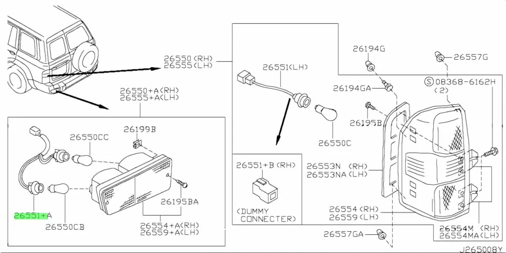 Nissan Patrol Y61 rear lower factory lamp wire lamp socket