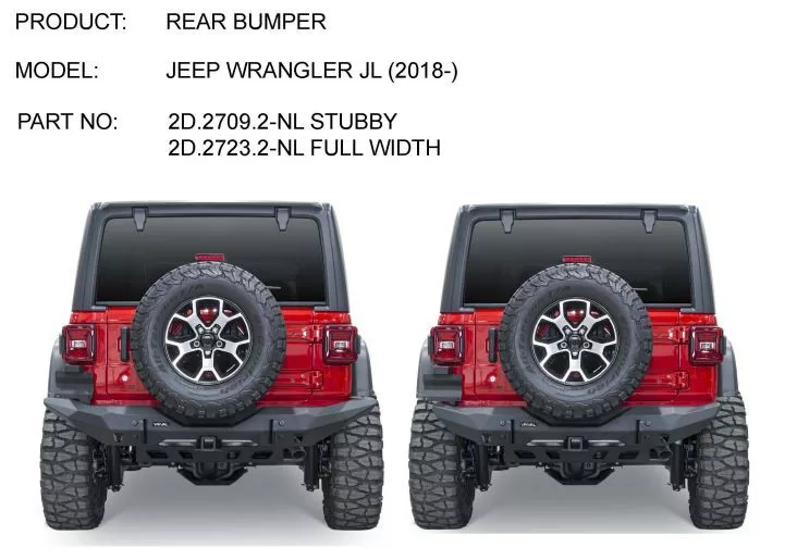 RIVAL4x4 aluminum rear bumper -Stubby- Jeep Wrangler JL 2018->