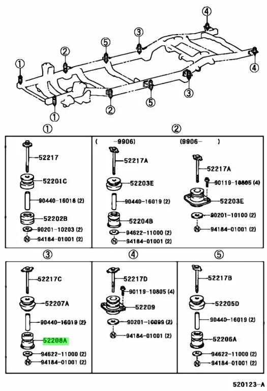"Cabin Support Rubber Bushing Middle Lower for Toyota Land Cruiser 90