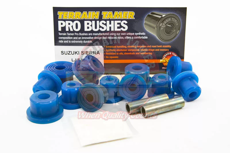 A szintetikus elasztomerből készült Terrain Tamer Pro perselyek előnyei számosak, de a legfontosabb, hogy ötvözik a gumi vezetési érzetét a szintetikus perselyek tartósságával.