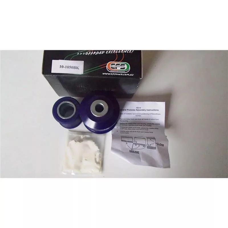 The EFS Castor Correction Bush Kit is designed to correct the pinion angle of the front differential in GQ-GU Nissan Patrols and 80-100 Series Toyota Landcruisers. When these vehicles are raised above standard height the pinion angle changes, this bush kit re-aligns the pinion angle and corrects the vehicles castor angle, this inturn improves high speed vehicle control and safety.