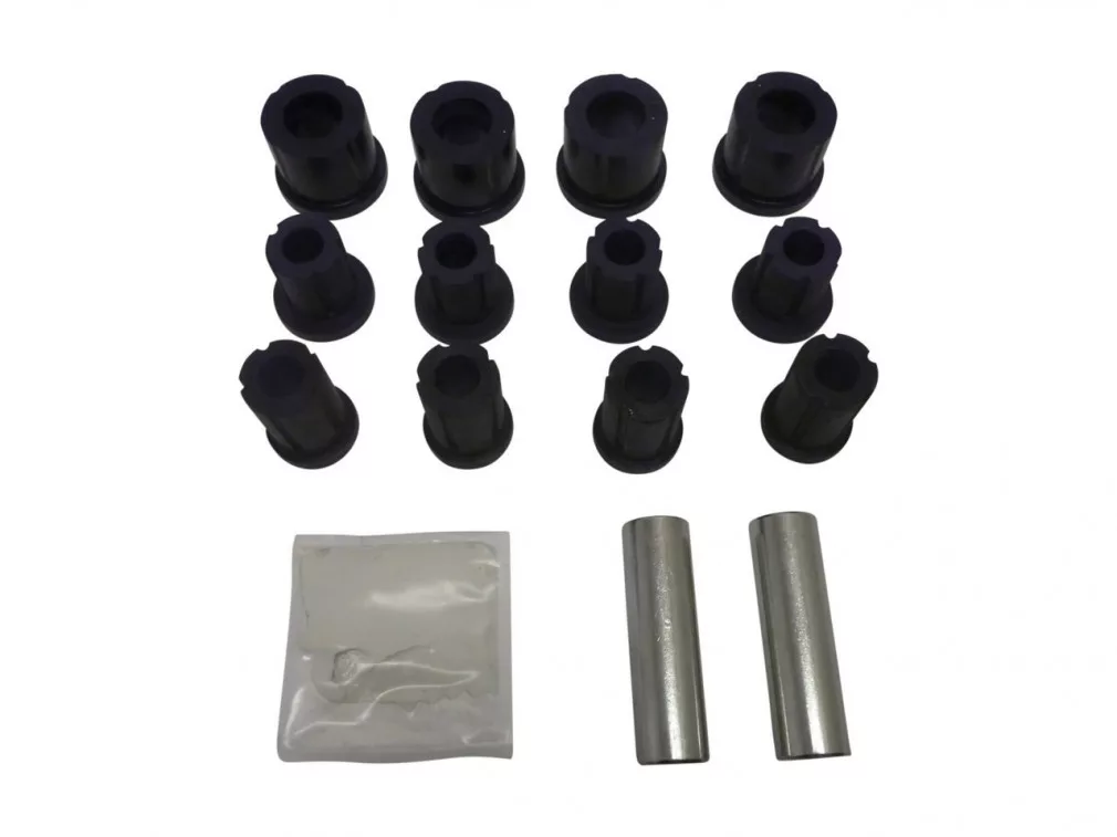 This kit contains a set of 12 polyurethane bushes, steel sleeves and lubricating grease.
