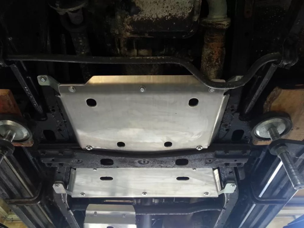 F4x4 aluminium manual gearbox cover protects Nissan Patrol Y61