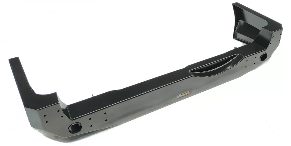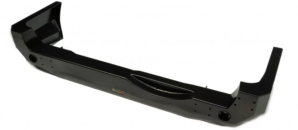 This bumper has mounting holes for shackle handles, two holes for the hi-lift jack and holes for mounting the canister and spare wheel. Solid steel constructionallows full use of the bumper in the field.