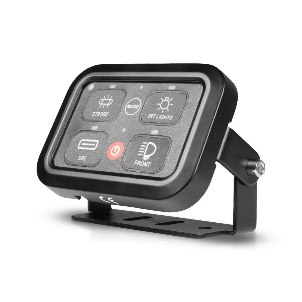 The Purelux Multi-Switch Dashboard Controller is a very versatile and convenient switch panel for controlling four different electrical devices (lights, beacons, engine fan or even a seat heater). With the help of the switch panel, you can e.g. in the work machine, you can control the front, rear and side work lights as well as the beacon separately, and the switches for all lights are conveniently in the same place. The lights can be turned on and off individually, and with the switch in the middle, all devices installed behind the panel can be turned off at the same time. All lights connected to the switch panel (and other devices as well) can be turned on either steadily (i.e. turn the button on and off with another click), momentarily (the light turns on when the button is held down) or flashing.