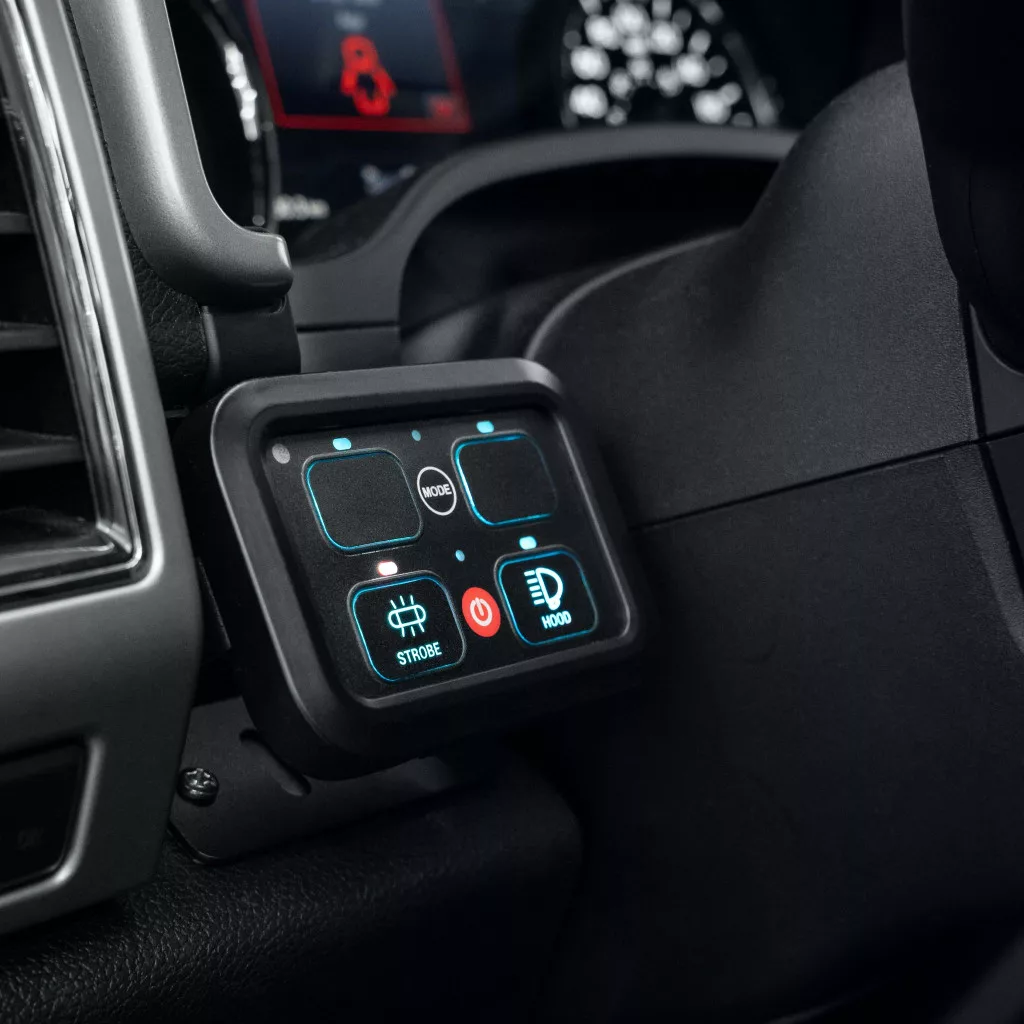 Additional features of the switch panel - in addition to continuous power, the switches can be programmed to work as a one-time flash button or a continuous flashing strobe function: To change the operating mode, follow these instructions: Step 1: Turn on the switch panel. Step 2: Press the “Mode” button twice quickly and the LED indicators above the switches will start flashing. Step 3: Press the switch whose function you want to change. Step 4: Test the operation. If the operating mode did not change, restart the switch panel and repeat steps 1-3.