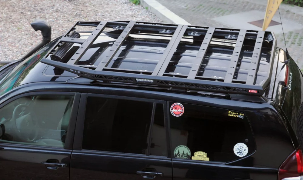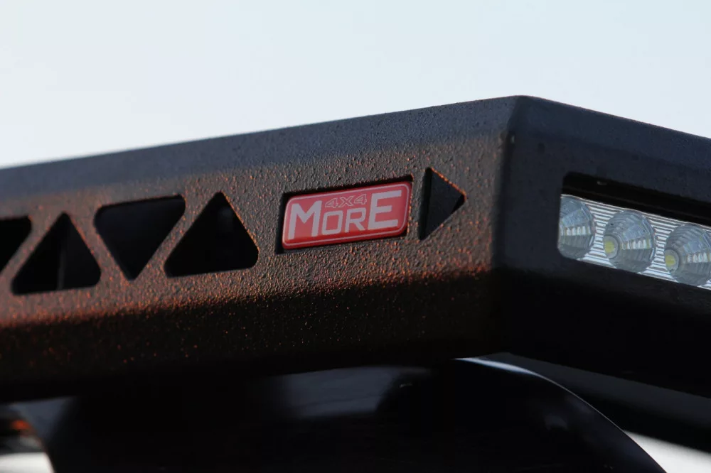 The More 4x4 roof rack has a spatial steel structure, powder coated in black and with a structure finishing on the outside.