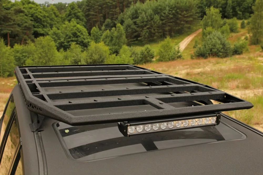 The More 4x4 roof rack has a spatial steel structure, powder coated in black and with a structure finishing on the outside.