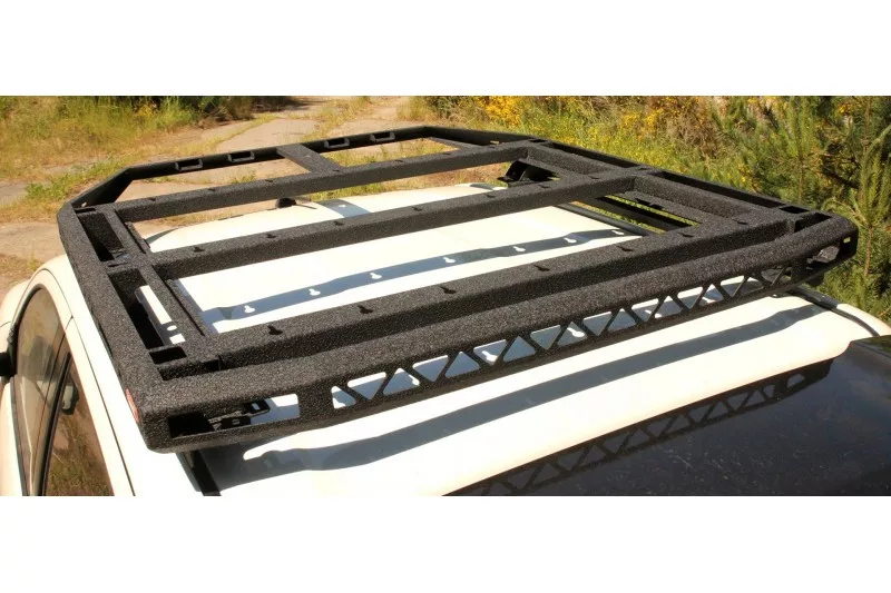 The platform is flat at the top and adapted for mounting roof tents. On the upper surface, the offroad trunk has holes for easy mounting of luggage nets and for screwing any individual fasteners.