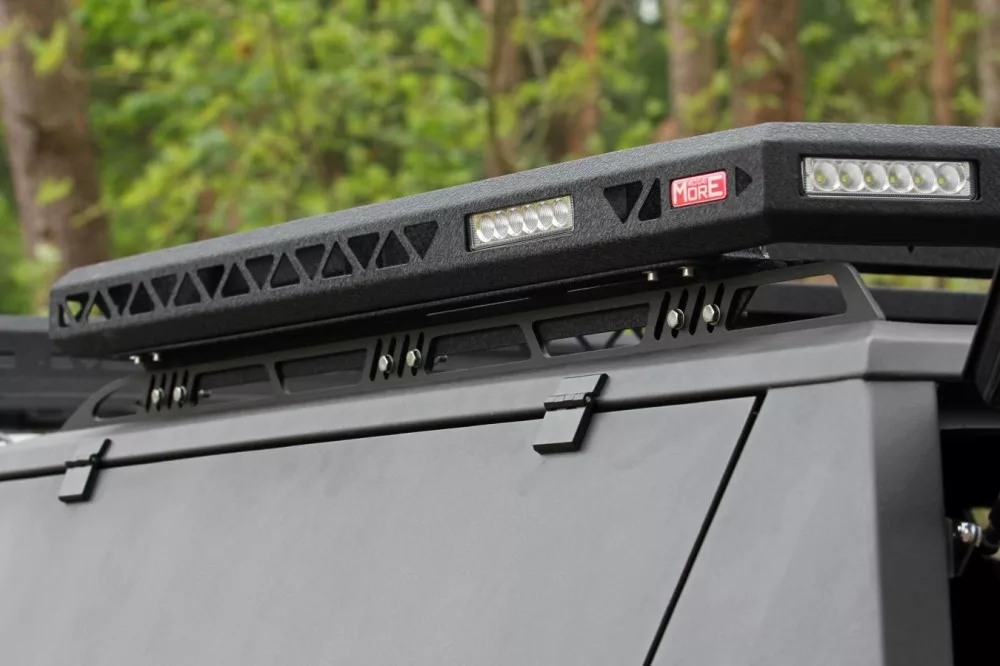 On the sides of the boot platform there are fixings for LED work lamps and a fixture for LED panels at the front of the boot.The platform is flat at the top and adapted for mounting roof tents. On the upper surface it has holes for easy mounting of luggage nets and for screwing any individual fasteners.