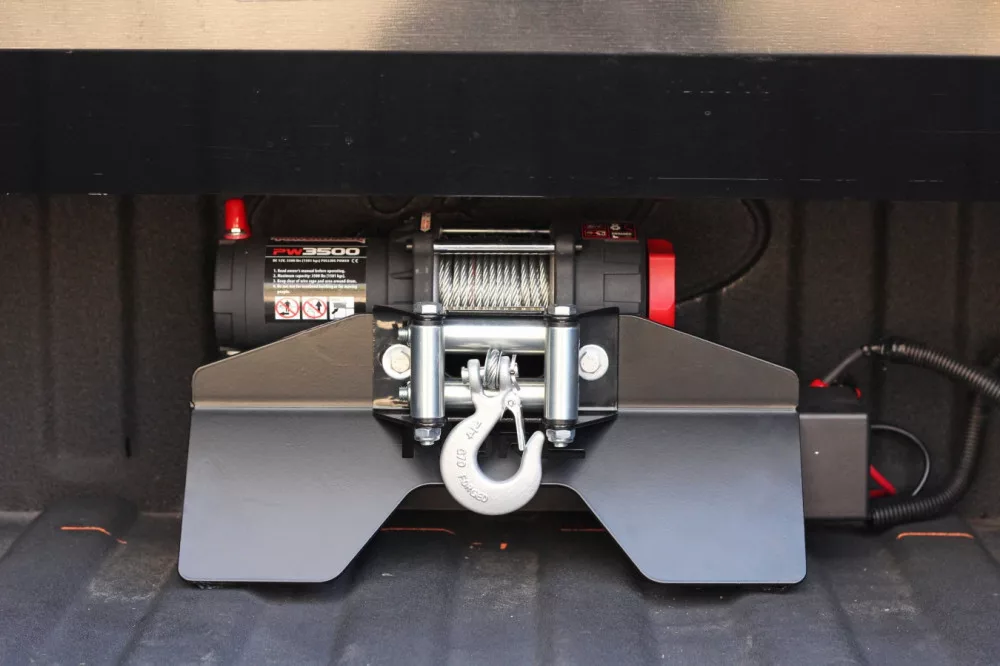 More4x4 Winch mounting plate for the truck bed - low fixing, under the roller shutter