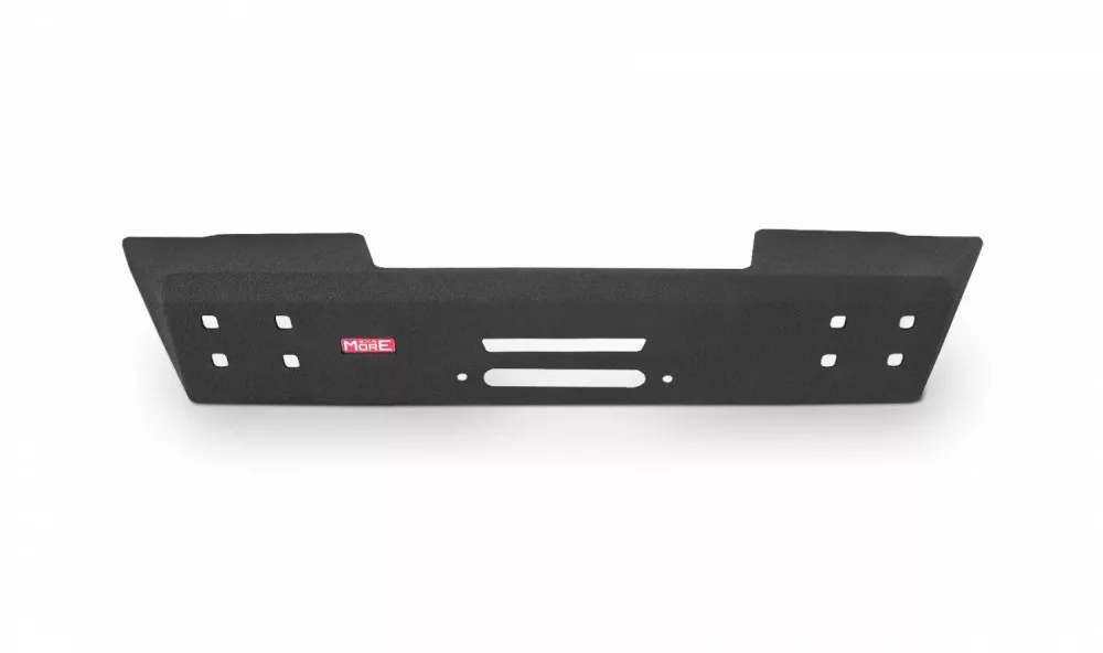The bumper has two built-in daylight or fog lamp holders, reinforced mounts for shackle holders and a winch mounting plate, which is standard equipment on all MorE 4x4 front bumpers.