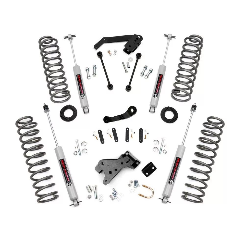 Give your Jeep a total transformation with Rough Country’s 4" suspension lift! This all-inclusive kit comes with everything you need to give your vehicle aggressive good looks and improved off-road performance! This kit features lifted coil springs and coil correction plates, providing lift height and impeccable vibration dampening on any terrain.