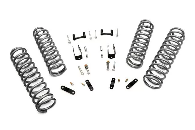 Transform your Jeep and run larger wheels and tires with Rough Country’s popular 2,5” suspension lift! This easy-to-install suspension lift features everything you need to gain increased ground clearance and a killer new look. This kit features a set of lifted front and rear coil springs to offer a taller profile and fantastic off-road ability. These coil springs are factory-tuned to the OE spring rate to offer a factory-like ride quality.