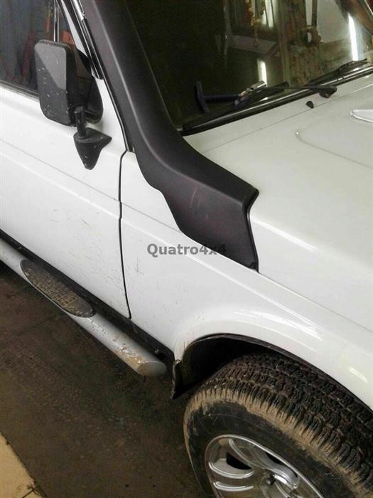 The kit mounted on the car to overcome deep fords and provide clean air to the engine.
