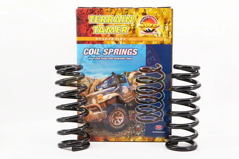 A tradicionális Ausztrál gyártású Terrain Tamer spirálrugó úgy lett tervezve, hogy  minden körülmények között maximális kényelmet, biztonságot és a lehető legnagyobb terhelhetőséget adjon terepjárójának.